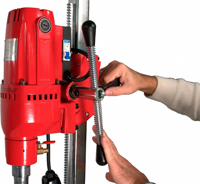 - Встроенные в каретку регулируемые направляющие обеспечивают легкую и плавную подачу сверлильной коронки