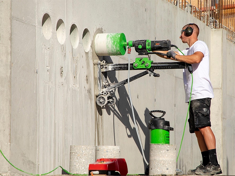 Станина для алмазного бурения Eibenstock BST 352 V (Айбеншток БСТ 352 В) предназначена для корончатого сверления отверстий Ø до 352 мм в различных строительных материалах во всей строительной отрасли, с применением дрелей и двигателей алмазного бурения.